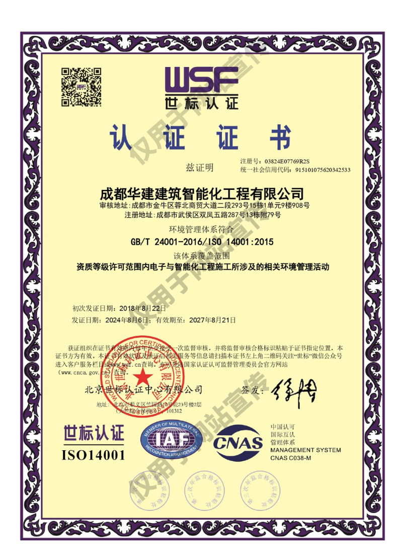 環境管理體系認證證書